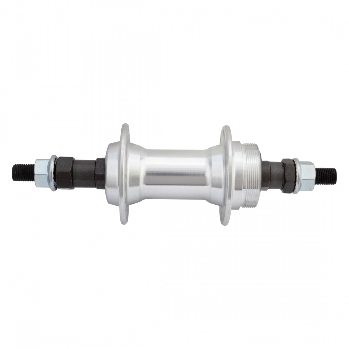 Alloy hub shell with bolt on axle