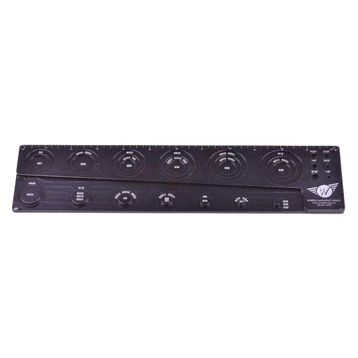 Durable black anodized aluminum with laser etched lettering to quickly identify bearing size